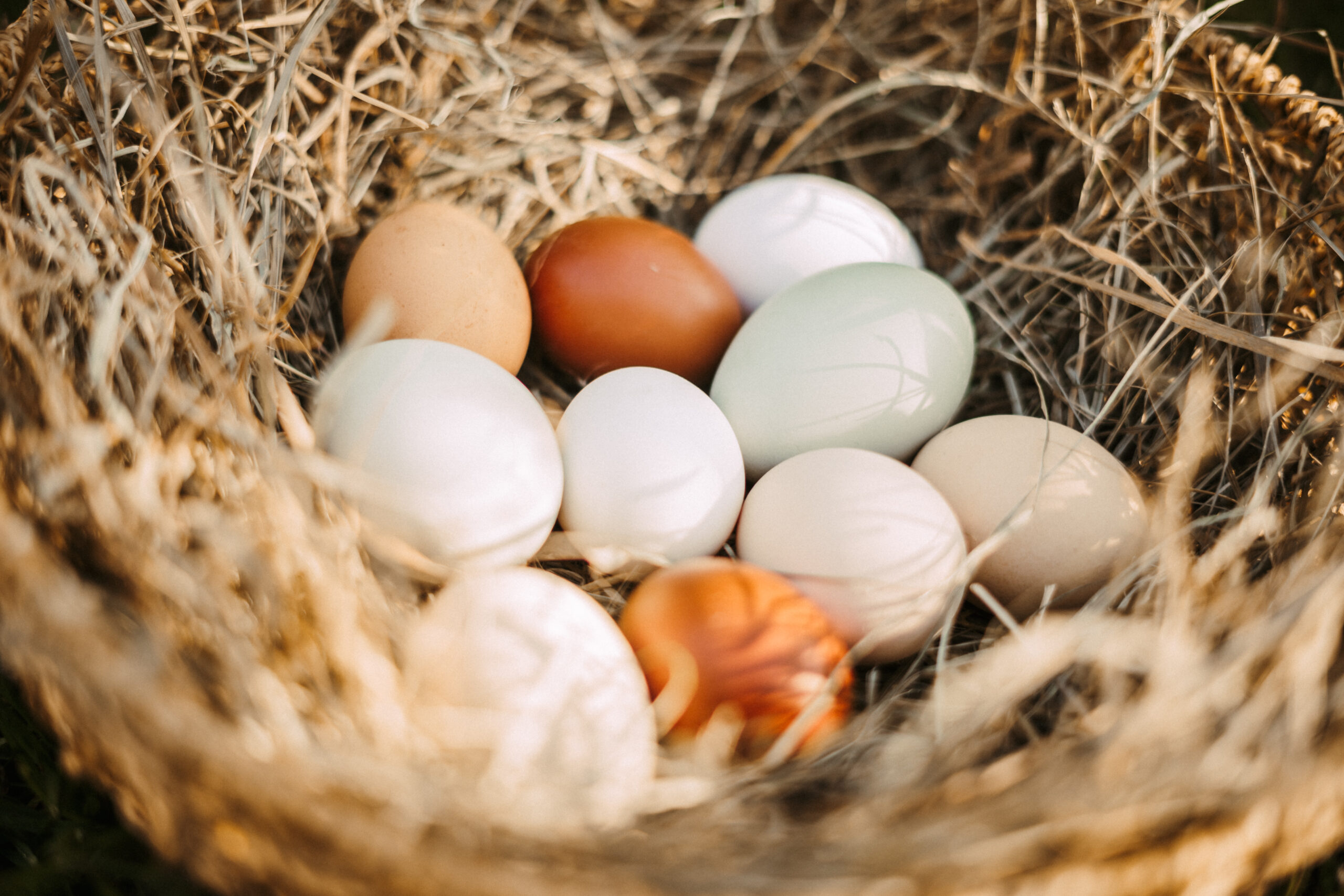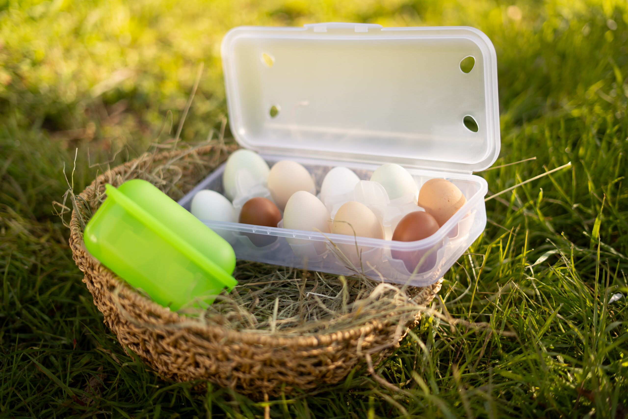 Unsere Hühner legen wunderschöne, bunte Natureier